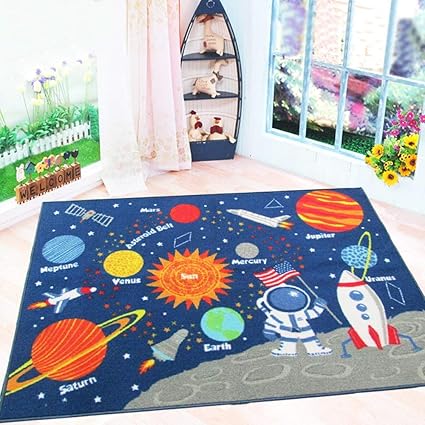 Hebe Kids Rugs Non Skid Washable Outer Space Rug Children Educational Learning Carpet For Playroom Bedroom Solar System Large Area Rug Blue 3 3 X 4 3 Stars Amazon Co Uk Baby Products