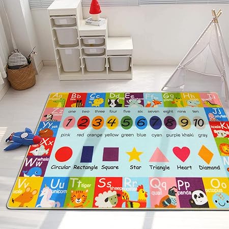Pauwer Kids Play Rug Mat Extra Large 100 X 150 Cm Playtime Collection Abc Alphabet Numbers Shapes Animal And Color Educational Learning Area Rug Carpet For Living Room Bedroom Playroom Classroom Amazon Co Uk