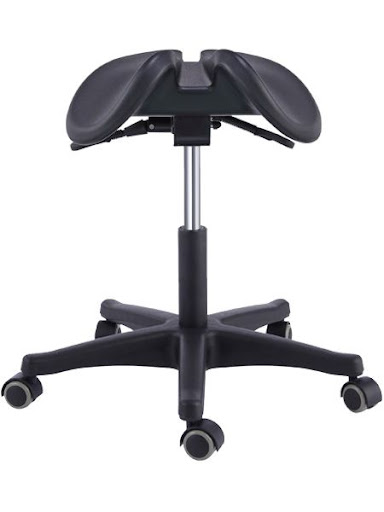 Sitting higher to open the circulation channels loading the joints to promote joint health positioning the pelvis in a way that the spinal curves are neutral and having no pressure on the pelvic floor are all enabled by a saddle chair with a divided seat.